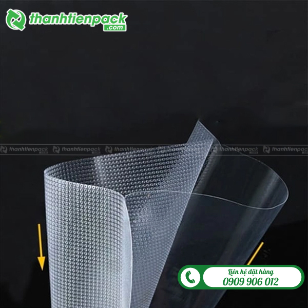 - Mặt nhám (mặt gân): Mặt có các đường gân hoặc chấm bi nổi, tạo ra các khe hở nhỏ bên trong túi, giúp máy hút chân không hút được toàn bộ không khí ra ngoài một cách nhanh chóng và triệt để, đặc biệt là với các loại máy hút chân không gia đình.
