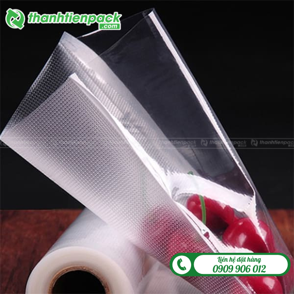 - PE (Polyethylene): Lớp nhựa PE có độ dẻo dai, mềm mại, chịu nhiệt tốt và an toàn khi tiếp xúc trực tiếp với thực phẩm. Lớp PE cũng là lớp tạo ra mặt nhám hoặc đường gân nổi, giúp việc hút không khí dễ dàng và hiệu quả hơn.