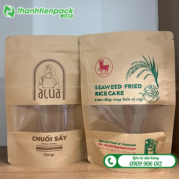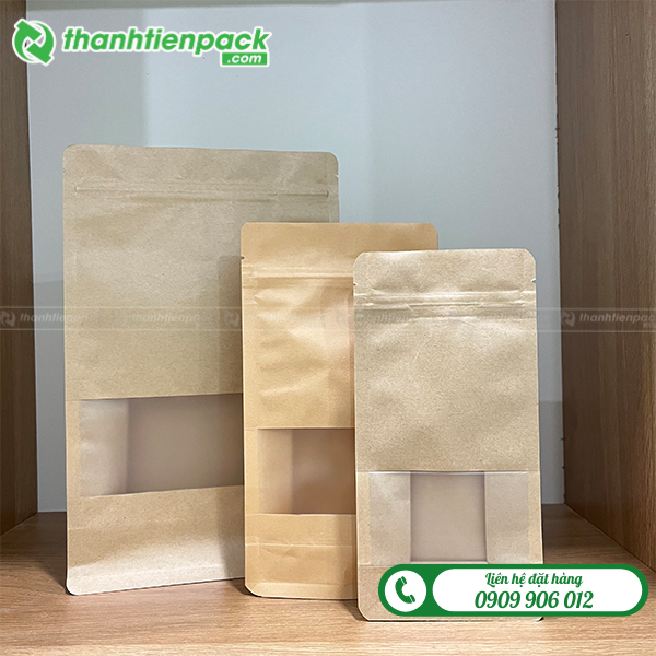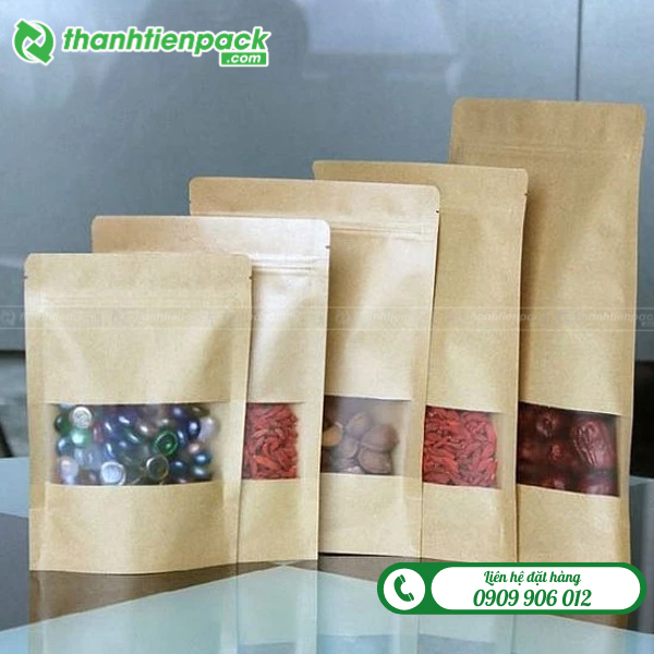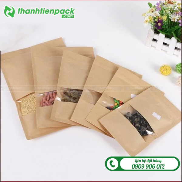 Túi zipper giấy kraft cửa sổ giá rẻ Hà Nội, chất liệu an toàn cho thực phẩm. Nhận in ấn, sản xuất theo số lượng yêu cầu với chi phí ưu đãi dành cho doanh nghiệp.