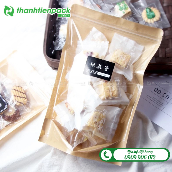 Túi zip giấy kraft đáy đứng đựng bánh